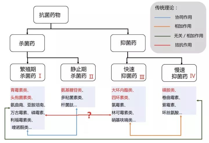 圖:殺菌藥、抑菌藥的常見藥物及傳統理論相互作用