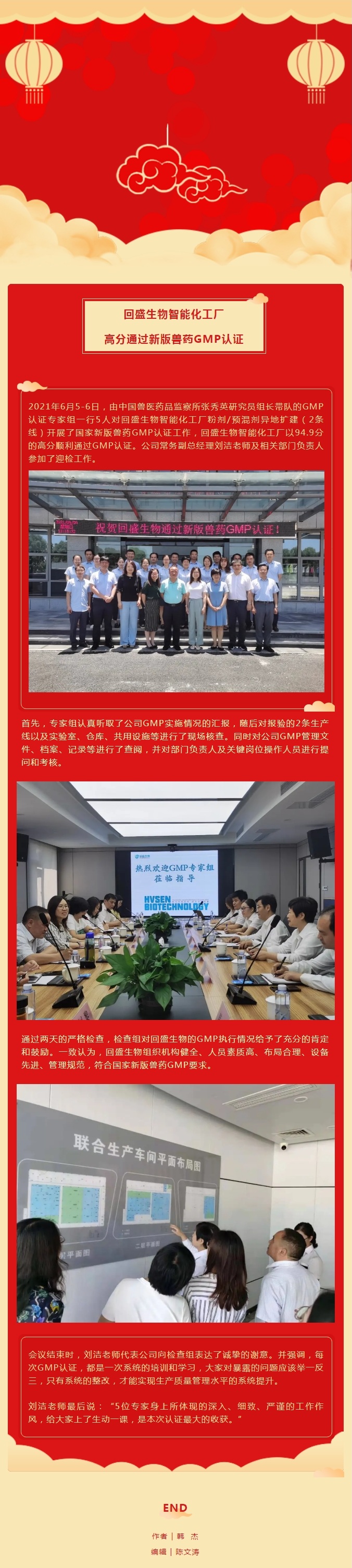 回盛生物智能化工廠高分通過新版獸藥GMP認證