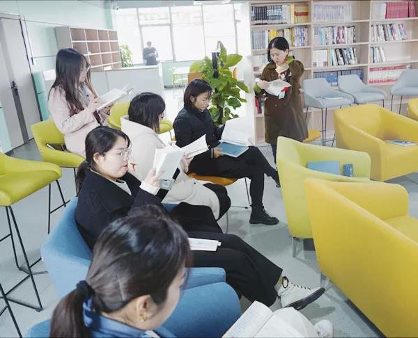 回盛智能化工廠圖書室里,一首首輕快明朗的旋律與書本相約,喚醒了大家對文字的記憶,重新發現字里行間的雋永之美。書架前,書友們輕撫各色各樣散發著油墨香氣的書籍,暢游辭海,細品讀書的滋味。