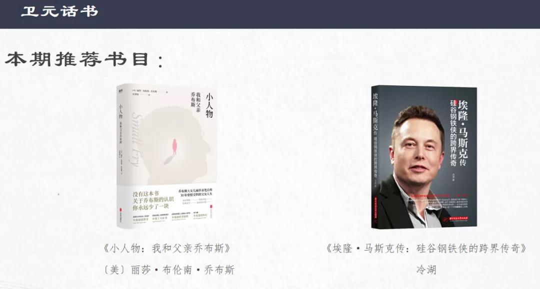 說到《馬斯克傳》《小人物:我和父親喬布斯》時,他總結道:“在他們身上,不僅看到了鋼鐵般的毅力,而且最難能可貴的是,他們從頭到尾一直在堅持一個事,就是孜孜以求地學習。”