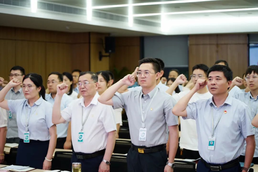 公司首席顧問李名家、副總經(jīng)理李碩,公司副總經(jīng)理、湖北回盛總經(jīng)理韓杰、武漢新華星總經(jīng)理張翠平、黨委書記趙敏出席,與現(xiàn)場及線上的黨員、入黨積極分子、共青團(tuán)員、各部門主管及以上干部共同參與了這一莊嚴(yán)時(shí)刻。