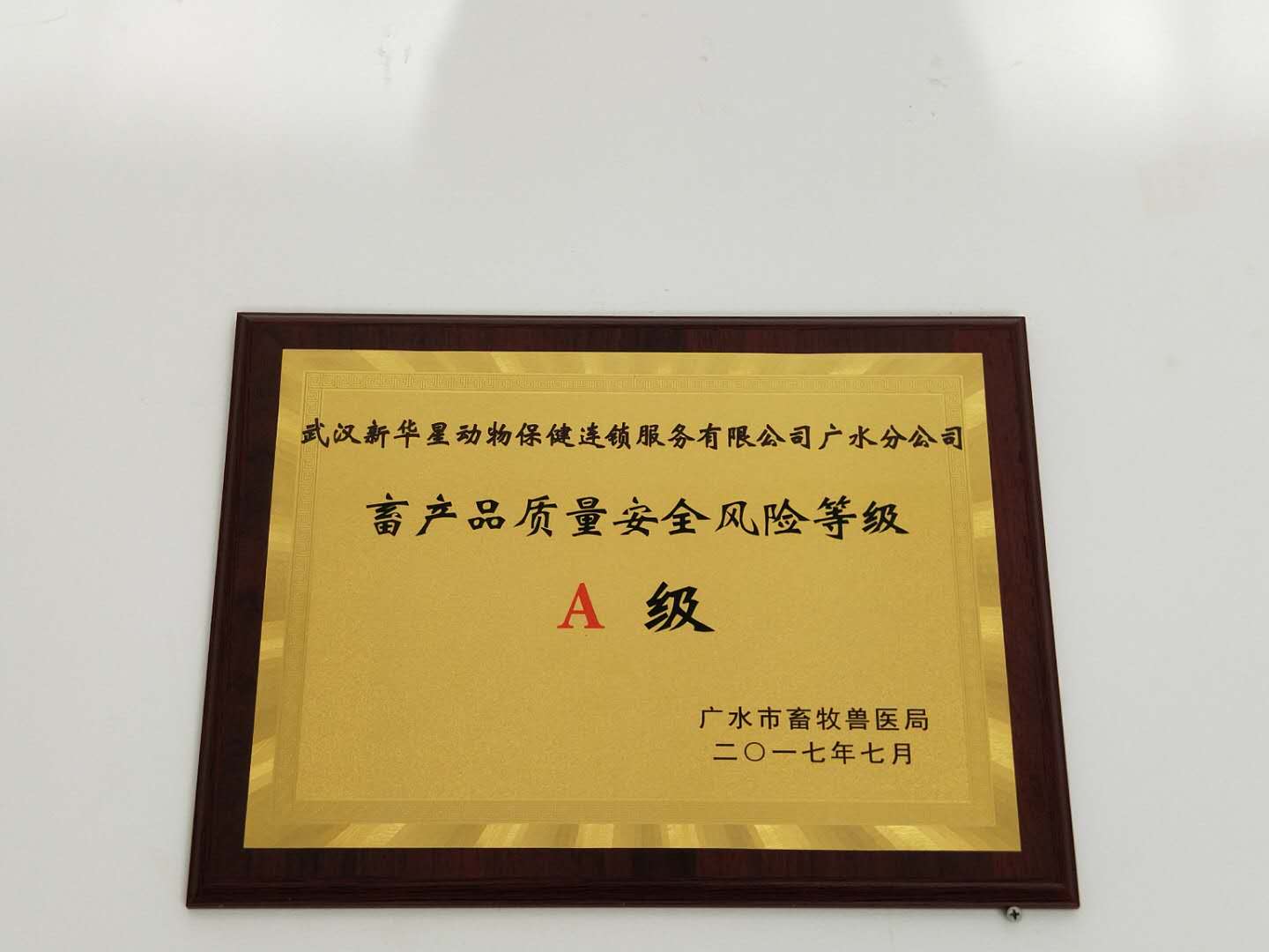 廣水獲得畜產(chǎn)品質(zhì)量安全風險等級A級